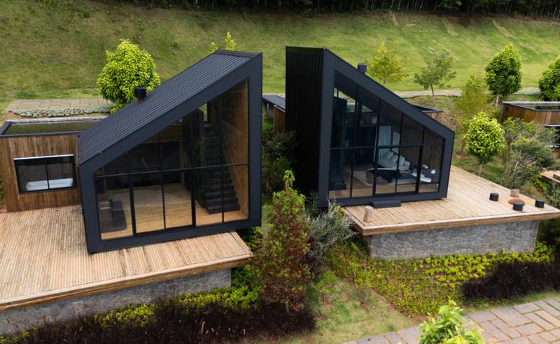 “O empreendimento foi pensado para se integrar à paisagem montanhosa de Monte Verde, garantindo privacidade entre os chalés e vistas panorâmicas das montanhas. Ao mesmo tempo, precisávamos de uma solução construtiva que permitisse eficiência logística e precisão na execução”, explica.